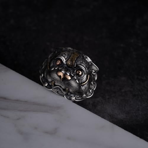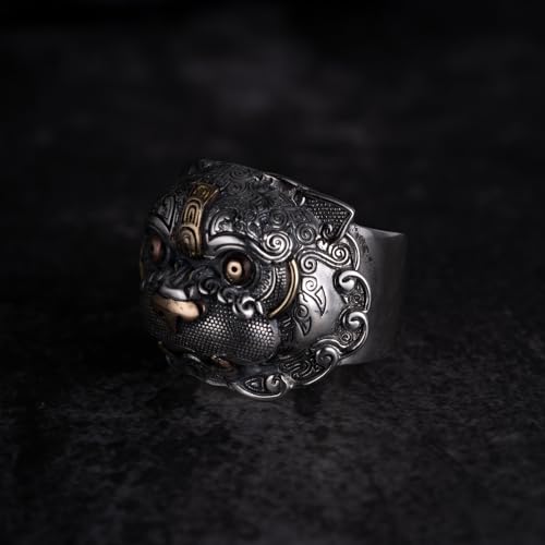 ForFox Anello PIXIU Animale Mitico Cinese in Argento Sterling 925 Vintage per Uomo Donna Regolabile