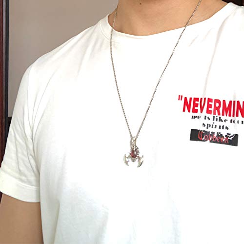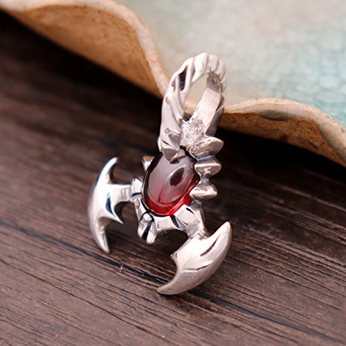 ForFox Ciondolo Scorpione con Granato Rosso Ovale in Argento Sterling 925 Punk per Uomo Donna