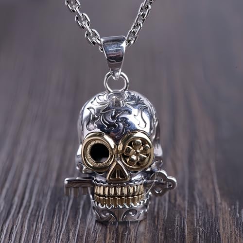 ForFox Ciondolo Teschio con Chiave in Argento Sterling 925 Gotico per Uomo Donna