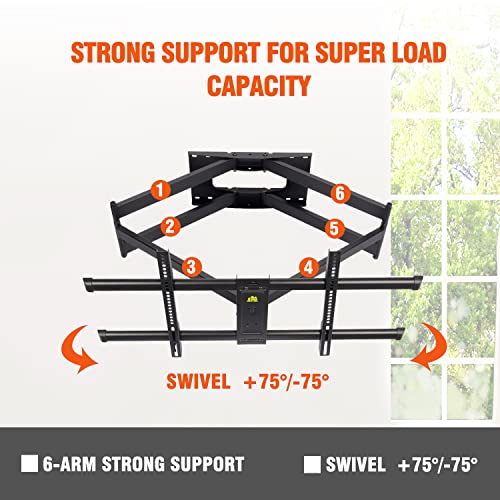 Supporto da parete per TV a doppio braccio extra lungo: questo supporto per TV a lunga portata è perfetto per risolvere i problemi di visione con un braccio di estensione da 109 cm. Il braccio si estende 109 cm dalla parete e massimizza i punti di vista da diverse angolazioni in più stanze