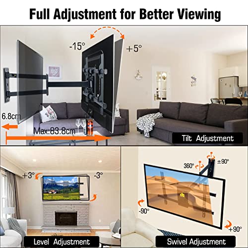 FORGING MOUNT Supporto TV parete staffa TV braccio TV porta TV da parete 840mm di estensione liscia e girevole, inclinabile, per TV o monitor da 32-70 pollici, fino a 45 kg, VESA 600 x 400 mm