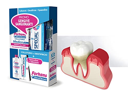 INCLUDE: Il Programma Gengive Sanguinanti Zinco Cloruro è composto da Collutorio Forhans Medico Diluito (250 ml), Dentifricio Forhans Special (75 ml), Spazzolino Forhans Medico