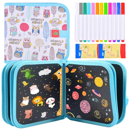 Forhome Libro Lavagna Cancellabile Bambini, Portatile da Disegno per Bambini, 14 Pagine Disegno Cancellabile, Con 12 Penne Cancellabili Colorate, Riutilizzabili, Doodle Disegno Giocattoli per Bambini