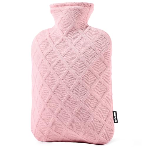 FORICOM Borsa dell'acqua calda con copertura per alleviare il dolore, borsa dell'acqua calda per terapia fredda e calda, 1,8 l classica bottiglia dell'acqua calda (rosa)