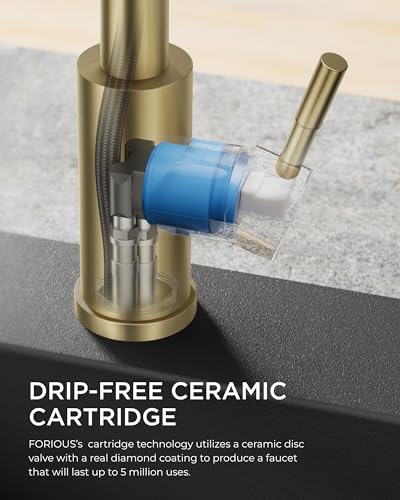 FORIOUS Rubinetto Cucina D'oro, Miscelatore Cucina con Tubo Flessibile & Doccetta Estrabile, Beccuccio Girevole a 360°, Acciaio Inossidabile