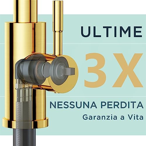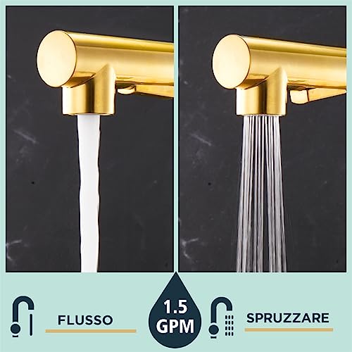 FORIOUS Rubinetto Lavello Cucina, Miscelatore Cucina con Doccetta Estraibile Rubinetti per Lavelli da Cucina, Acciaio Inox Ad Alta Pressione Orientabile a 360° Monocomando, Oro Spazzolato