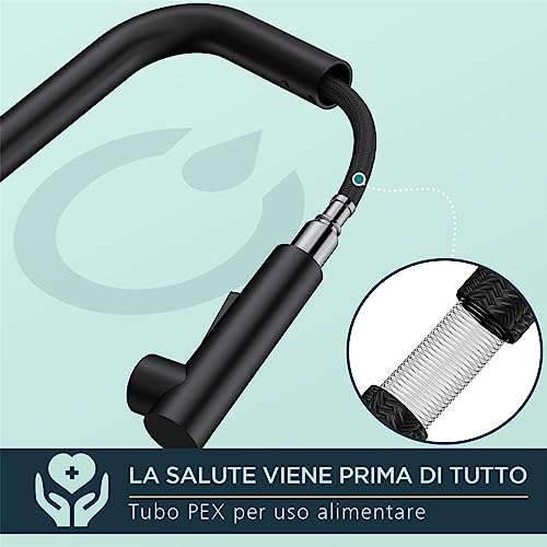 FORIOUS Rubinetto Lavello Cucina Nero, Miscelatore Cucina con Doccetta Estraibile Rubinetti per Lavelli da Cucina, Acciaio Inox Ad Alta Pressione orientabile a 360° Monocomando