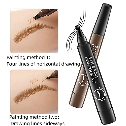 Quad Forked Liquid Eyebrow Pencil,Bifurcated Eyebrow Pencil,Magical Precise Waterproof Brow Pen,Waterproof Brow Pencil With Micro-Fork Tip,Waterproof Microblading Eyebrow Pen (2pcs Light Brown)