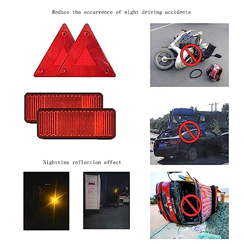 Forlush 4 Pezzi Catadiottro, Riflettori di sicurezza, Catarifrangenti Triangolari Posteriori per la Protezione di Sicurezza Notturna di Tutti I Tipi di Biciclette, Camion E Rimorchi (Rosso)