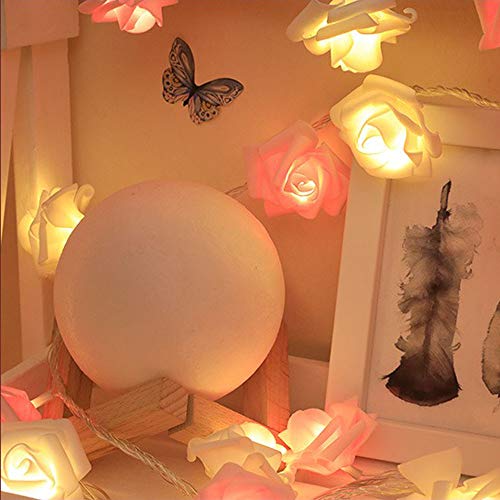 Luci a Led a Forma di Fiore Rosa, 30 Led 4,5 Metri / 15 Piedi Luci Della Stringa Del Fiore, Luci Fatate per Interni, Giardini All'Aperto, Matrimoni, San Valentino, Feste In Casa (Bianco e Rosa)