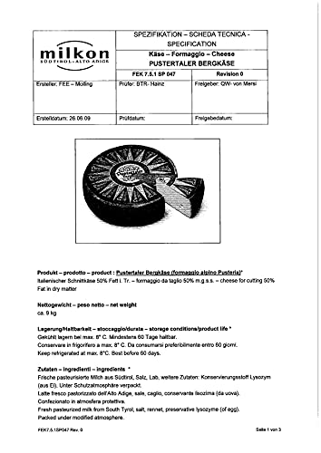 Formaggio Alpino Pusteria Mila forma intera ca. 9,7 kg.