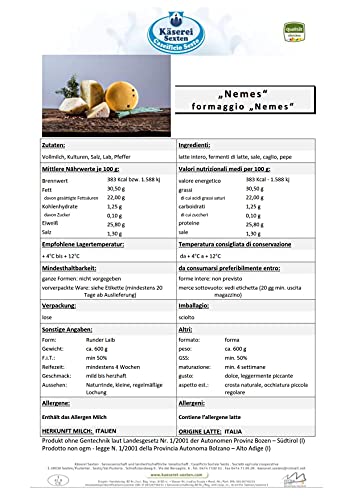 Formaggio al Pepe Alpe Nemes ca. 650 gr. - Caseificio di Sesto