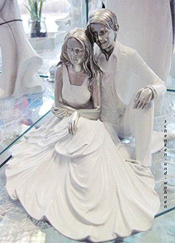 Formano scultura oggetto d' arte decorativa oggetto Coppia di Sposi, seduto, Bianco Argento, 18 x 13 cm