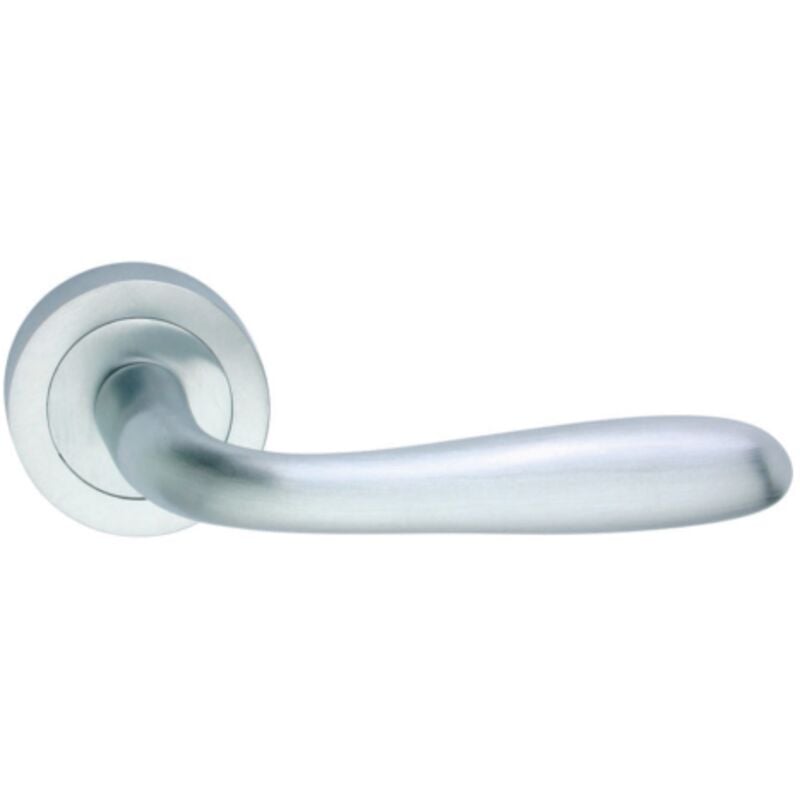 Maniglia Forme serie Goccia in lega Finitura cromo satinato Completa di rosetta Per maggiori info sui prodotti visita il nostro sito;