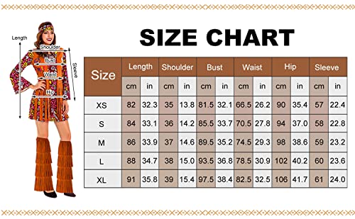 Formemory Costume hippie da donna, 7 pezzi, costume da hippie, abito da donna, costume da discoteca, Halloween, anni '80, con accessori hippie (XL, costume hippie)
