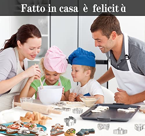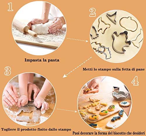 【Facile da usare, sicuro】Ogni formine biscotti halloween ha due bordi delicati,un bordo liscio per tenere in posizione lo stampo per biscotti e un bordo più affilato per tagliare l'impasto.Il bordi lisci senza sbavature li rende facili da usare per adulti e bambini,il che significa che non farà mai male alle dita o alle mani.Sicuro e comodo da usare è la scelta migliore.