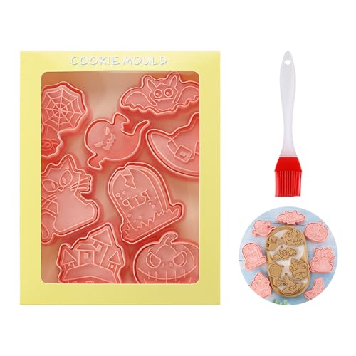 【Set di formine per biscotti di Halloween】 La confezione include 8 formine per biscotti di Halloween negli elementi a tema Halloween + 1 pennello in silicone. che può fornire la migliore decorazione per le decorazioni dei biscotti di Halloween, perfetta per le decorazioni da forno per le feste di Halloween.