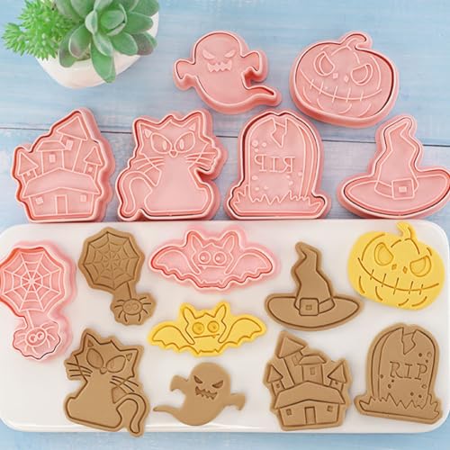 Formine Biscotti Halloween,Formine per Halloween in Plastica 3d,Set di Formine per Biscotti di Halloween,Set di Formine per Biscotti per Feste di Halloween,3d Formine per Biscotti,8 Pezzi