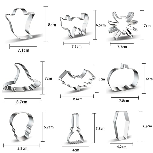 【 9 Stampo per Biscotti di Halloween】Pipistrelli, zucche, scheletri, fantasmi, caramelle, ragni, gatto, cappello da strega. Un set da cucina versatile ed essenziale che durerà per diversi anni.
