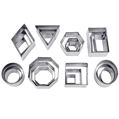 Forma unica multipla: il set di 24 mini formine per biscotti a forma geometrica include 3 misure di 8 forme ciascuna per biscotti. 3 esagonali, 3 quadrati, 3 cerchi, 3 ovali, 3 ottagoni, 3 diamanti e 3 rettangoli per la decorazione del fondente. Ideale per decorare torte, mini pasticceria, pasta di gomma, ciambelle, biscotti, ecc. (Nota: si tratta di mini tagliabiscotti, si prega di controllare le dimensioni prima dell'acquisto)