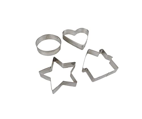 12 DIVERSE FORME PER BISCOTTI - cuore 6,5 cm, stella 6,5 cm, casa 6,5 cm, cerchio 5,5 cm, cuore 5 cm, stella 5 cm, casa 5,5 cm, cerchio 4,2 cm, cuore 3,2 cm, stella 3,5 cm, casa 4,5 cm, cerchio 3,2 cm.