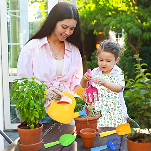 【Attrezzi da Giardinaggio per Bambini Completi】: Questo kit per la semina e il giardinaggio per bambini include: 1 borsa da giardino, 1 grembiule, 1 paio di guanti da manica, 1 bottiglia l'acqua, 1 bocca di bottiglia d'acqua, 4 pale con diverse funzioni, 3 piante quadrate Etichetta e 3 cuori etichette di piante a forma di. Lascia che i bambini sperimentino il divertimento di piantare mentre si godono la comodità di vari strumenti.