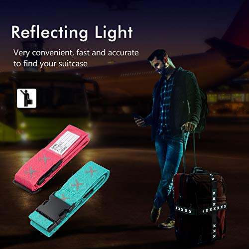 FORMIZON Cinghia per Valigia, 4 Pezzi Cinghie per Bagagli Tracolla Regolabile Accessori Indispensabili per Viaggiare, Slot per Tag Bagagli per Bagaglio da Viaggio - Verde, Rosa (A)