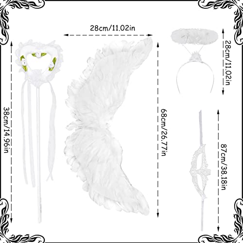 FORMIZON Costume da Angelo Ali Piumate, Ali da Angelo, con Ali, Aureola, Benda e Bacchetta Magica, Ali Angelo Bianche, Ali Angelo Piumate, Angelo Costume Halloween Carnevale Cosplay per Donne Ragazze