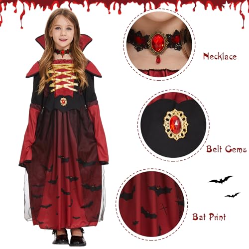 FORMIZON Costume Vampira Bambina, Abito da Vampiro Reale con Una Collana, Deluxe Costume di Halloween Bambini Vittoriano Vampiress Queen Dress Up, Ragazze Vampire Costume per Halloween Carnevale (M)