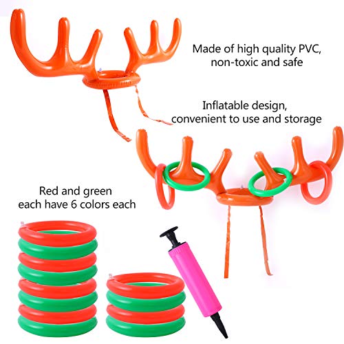 Renna Antler Toss Game: Contiene 2 x corna gonfiabili di renna, 12 x anelli di lancio (6 rosso, 6 verde) e 1 pompa di aria (colore casuale). Ottimo da portare via e giocare durante tutto il mese di dicembre o davvero tutto l'anno! Ti divertirai molto con il gioco di lancio della festa di Natale con le tue famiglie e gli amici.