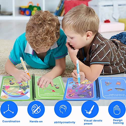 FORMIZON Libro da Disegno per Acqua, Water Disegno Pittura Libro con Penna, Libro in Tela per Pittura Riutilizzabile, Libro da disegno per Bambini Ragazzi Ragazze Presenti (3Pcs)