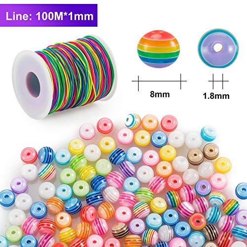 Quantity and size - Beads: 300 pieces, diametro perlina: circa 8 mm. Diametro del foro di perlina: circa 1.8 mm. Corda elastica dimensione: 1 mm di spessore del cavo, possibile tagliare il cavo di lunghezza corretta che si desidera, buono per perline.
