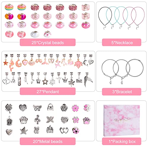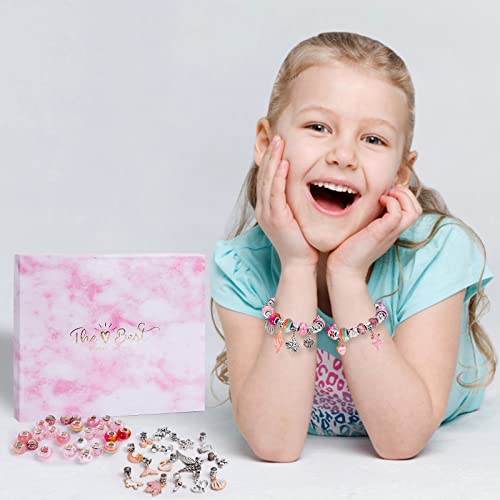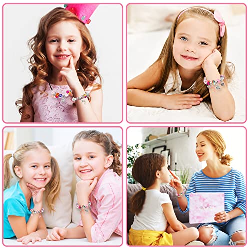 FORMIZON 80 Pezzi Kit per Braccialetti Ragazza, Set per La Creazione di Braccialetti con Ciondoli per Ragazze di 6-12 Anni, Creazione di Gioielli per Ragazze per Natale, Compleanno (Rosa)