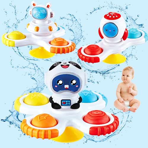 FORMIZON 3 Pezzi Giocattolo a Ventosa, Ventosa Spinner Giocattolo da Bagno, Spinner Giocattoli per Neonati, Antistress Frisbee, Regali di Compleanno per Ragazzi e Ragazze di 1-3 Anni (Astronauta)