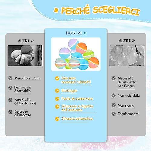 【Gavettoni Riutilizzabili】 A differenza dei palloncini d'acqua tradizionali, questo è riutilizzabile, quindi non inquinerà l'ambiente mentre giocate e non dovrete preoccuparvi di ripulirlo dopo, quindi iniziate la vostra battaglia d'acqua a vostro piacimento!