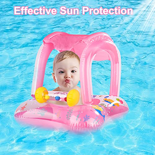 FORMIZON Baby Salvagente, Anello di Nuoto Gonfiabile, Giocattoli Galleggiante con Parasole e Sedile, Baby Float Salvagente Giocattolo, Salvagente per Neonati per Ragazzi Ragazze (Rosa)