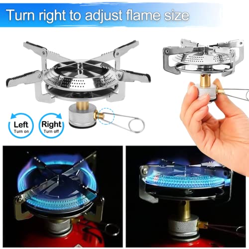 【FACILE DA ACCENDERE E REGOLARE LA FIAMMA】La maniglia della valvola di controllo del fornello a gas da campeggio può regolare la fiamma e può essere facilmente regolata da una fiamma bassa all'apertura completa ruotando la valvola del carburante. Forte potenza di fuoco, alta efficienza termica, può essere riscaldato rapidamente e risparmiare tempo. La potenza di fuoco raggiunge i 2800 W, quindi bastano 3 minuti per far bollire un litro d'acqua.