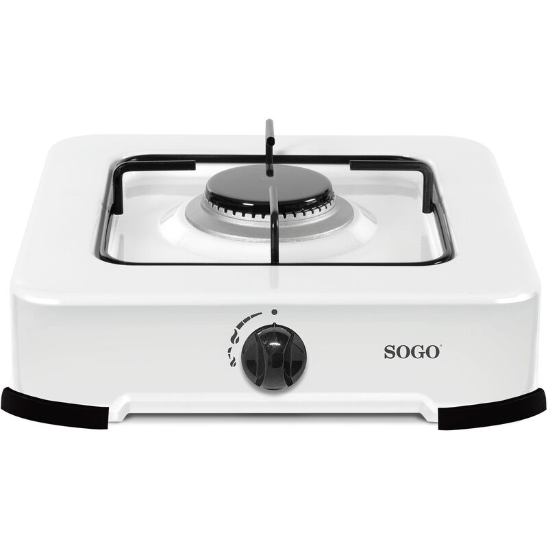 FORNELLO A GAS SOGO Con 1 fuoco bruciatore Per uso esterno Manopola on/off e controllo fiamma Tipo di gas: GPL - G30 - 3OmBAR Bianco smaltato Senza cappuccio Porta-vassoio smaltato Diametro bruciatore: 84,5 mm Consumo: 135 gr/h Potenza: 1,85 kW Dimensioni del prodotto: 304 x 333 x 105 mm