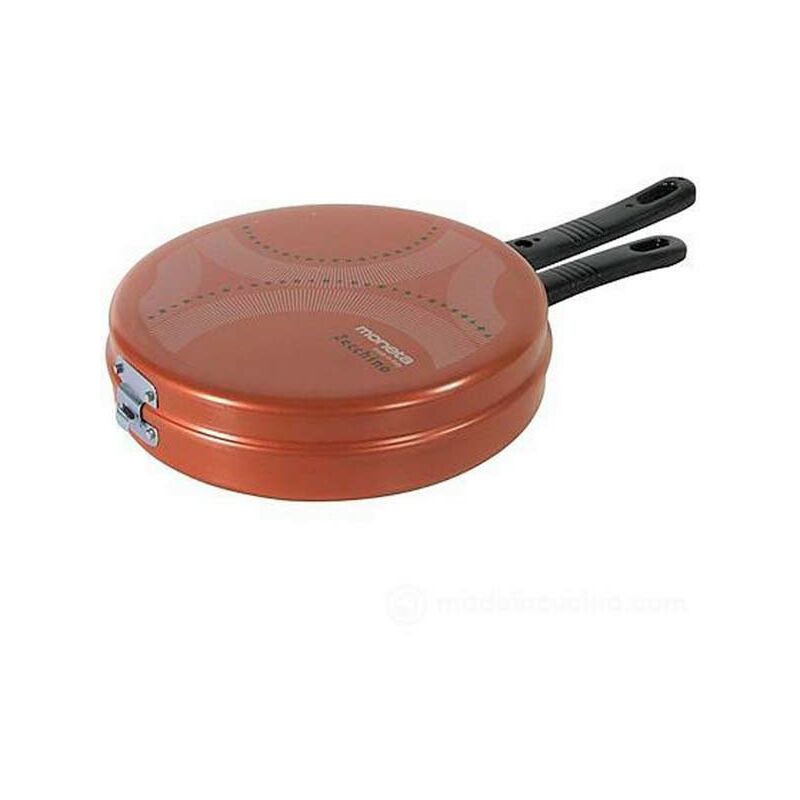 Alluminio - Spessore mm 1,9 Esterno colore rame serigrafato Interno antiaderente Teflon Classic OCS Manici bachelite Lavabile in lavastoviglie Garanzia 3 anni