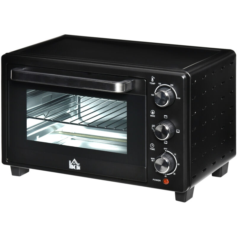 Vuoi far trovare cibi deliziosi in tavola? Prova il nostro fornetto elettrico HOMCOM. È dotato di temperatura regolabile e timer, così potrai cucinare i tuoi piatti alla giusta temperatura. Puoi scegliere fra 3 diversi metodi di cottura: con grill superiore, grill inferiore o entrambi. Include una griglia e una teglia che si possono posizionare su 3 livelli, perfetti per riscaldare al meglio fette di pane, pizze e molto altro. Un elettrodomestico da cucina da non perdere! Caratteristiche: • Capacità di 21L che permette di scaldare pizze da 25cm e 4 fette di pane • Temperatura regolabile da 100°C-230°C • Timer da 0-60 minuti • 3 modalità di cottura: grill inferiore, grill superiore, entrambi i grill • Dotato di 1 griglia, 1 teglia, 1 manico per teglia, 1 vassoio raccogli briciole • Sportello in vetro per tenere sotto controllo la cottura • Teglia e griglia regolabili su 3 posizioni Dati tecnici: • Colore: Nero • Materiale: Metallo, Acciaio inox, Vetro temperato • Dimensioni generali