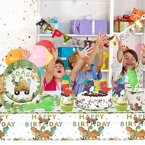 129 Forniture per Feste di Compleanno di Dinosauri Decorazioni per Piatti Dinosauri Compleanno di stoviglie a Tema di Dinosauri Set di Piatti Compleanno Adatto per 24 Persone
