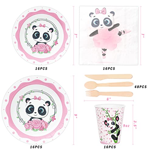 Pink Panda Birthday Decortaion for Girl: include 1 striscione "Happy Birthday", 16 piatti da 17,8 cm, piatti da 16 x 22,9 cm, 16 tovaglioli da panda, 16 x argenteria, 18 x topper per cupcake panda, 16 x cappello da festa, 1 x tovaglia (108 x 54 "), 2 × panda Palloncini in alluminio, 12 palloncini in lattice panda.