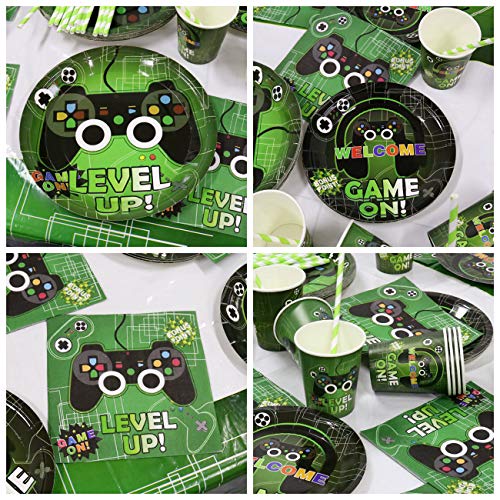 Forniture per Feste per Videogiochi - Decorazione per Feste di Compleanno a Tema Gioco per Ragazzi e Giocatori, Inclusi Piatti, Tazze, Tovaglioli, Tovaglia, Vortici da Appendere, Banner e Palloncini