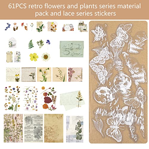 Forniture per Scrapbooking da 61 pezzi Carta per journaling Carta per album Set di adesivi per album vintage Scrapbooking Adesivi autoadesivi Fai da Te regalo floreale retrò decalcomanie artistiche