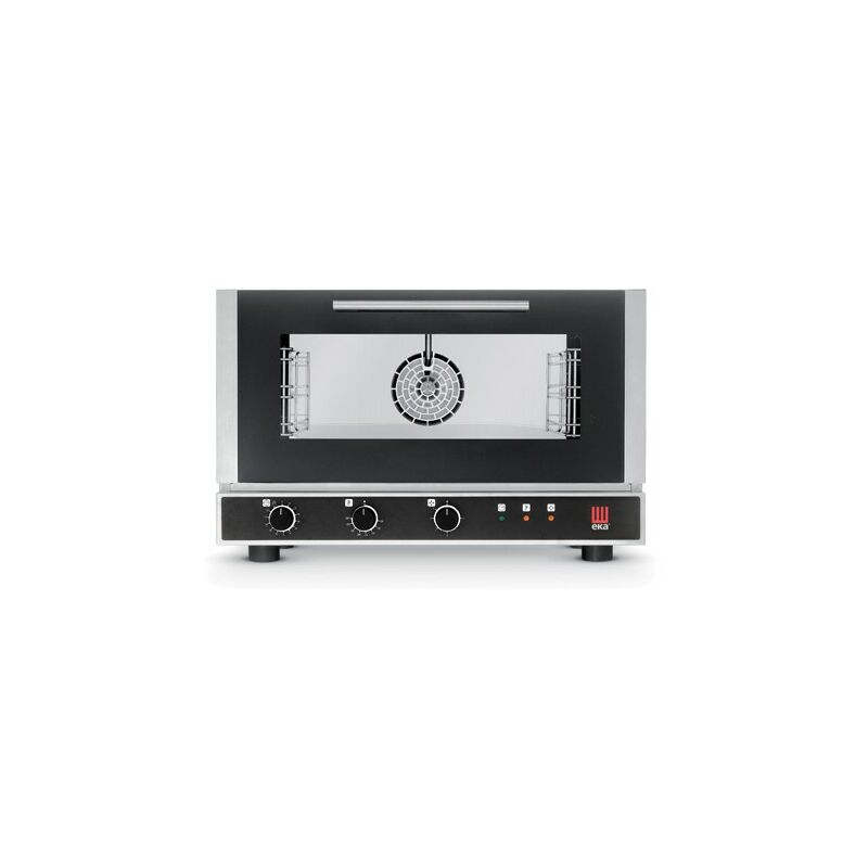 Codice RS3662 - Forno a convezione elettrico modello TE-EKF311UD, dimensioni cm. 79x75x50.5 (lxpxh), capacità camera cottura 3 vassoi/griglie GN1/1, 230 volt, 3.7 kw, n.1 motore bidirezionale, temperatura di lavoro 50-300 °C, camera di cottura in acciaio inox, umidificazione diretta con regolazione attraverso selettore a manopola a 5 posizioni, pannello comandi elettromeccanico. Dotazione di serie: supporti laterali. Cotture veloci e risultati ottimali. Progettato per punti di ristoro che non vogliono rinunciare a produzioni di qualità eccellente grazie all'utilizzo di uno strumento compatto e robusto. La funzionalità a vapore diretto permette la massima flessibilità e consente di soddisfare ogni esigenza di cottura: potrai scaldare panini farciti e piatti pronti surgelati sempre fragranti e saporiti. Accessori disponibili (quotazione a richiesta): tavolo di supporto inferiore in acciaio inox. Disponibile anche nelle versioni (quotazione a richiesta): pannello comandi digitale