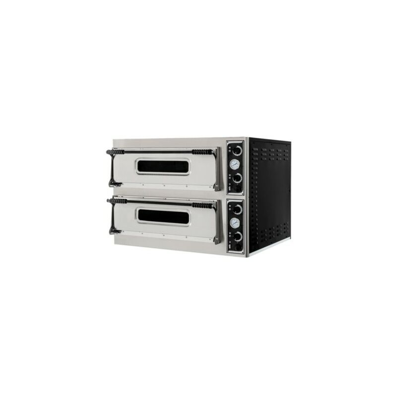 Codice RS2915 - Forno pizza elettrico modello PF-BASIC 66, dimensioni cm. 97.5x122x74.5 (lxpxh), dimensioni camera cm. 66x99x14 (lxpxh), 400 volt, 14.4 kw, temperatura d'esercizio 50-500 °C. Costruito in acciaio inox e in lamiera preverniciata. Piano di cottura in mattoni refrattari. Isolamento in lana di roccia evaporata. Resistenze corazzate. Illuminazione interna. Accessori disponibili (quotazione a richiesta): supporto inferiore in ferro verniciato, cappa di aspirazione inox.