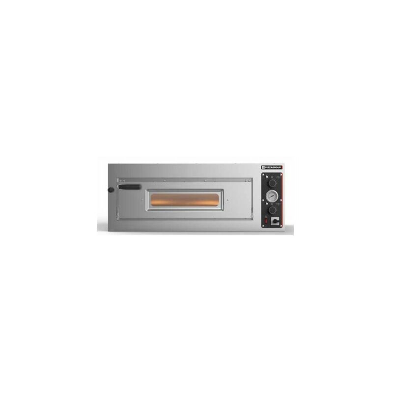 Codice RS0953 - Forno pizza elettrico modello PG-MAX 6L a 1 bocca, dimensioni cm. 148x101x40 (lxpxh), dimensioni camera cm. 105x70x15 (lxpxh), capacità massima n.6 pizze diametro cm.33, 400 volt, 9.9 kw, temperatura d'esercizio max 450 °C. I forni ENTRY hanno la facciata in acciaio, pareti laterali in lamiera preverniciata, cielo e base in zincato, pietre refrattarie da 14 mm sul piano cottura. Hanno l'isolamento in lana di roccia evaporata, termometro meccanico, interruttore generale, resistenze corazzate, luce camera e porta con vetro. Controllo della temperatura a mezzo termostati meccanici. Possibilità di avere, su richiesta, anche il telaio inferiore di supporto in acciaio inox e la cappa superiore di aspirazione. Disponibile anche nella versione 230 volt (con un supplemento sul prezzo finale di vendita).