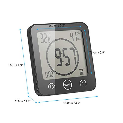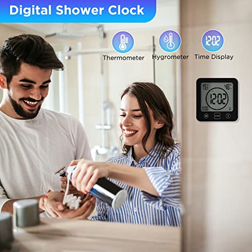 FORNORM Orologio da Bagno, Doccia Orologio Allarme Impermeabile Toccare Controllo ℃/℉ umidità Temperatura, Timer per il Conto Alla Rovescia, 3 Metodi di Montaggio, Alimentazione a Batteria (Nero)