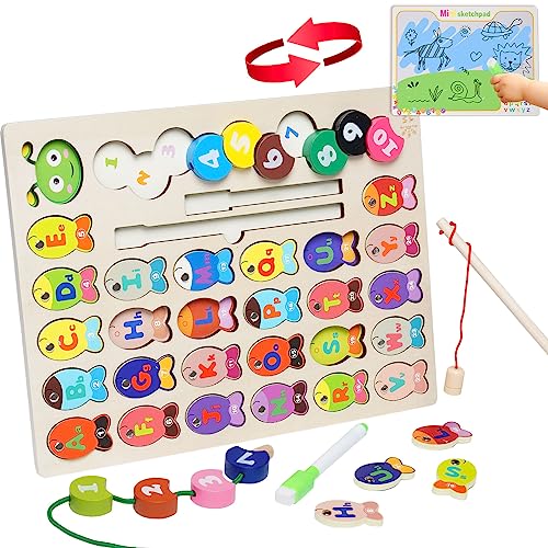 - Giocattolo Montessori 2 in 1 per bambini: il nostro giocattolo da pesca magnetico in legno è composto da 1 tavola da pesca (la parte posteriore è una tavola da Doodle), 1 canna da pesca, 1 pennello da pittura, 1 corda, 10 blocchi di legno digitali ed è composto da 26 piccoli pesci di legno. Questo giocattolo da pesca può aiutare i bambini a riconoscere colori e lettere e allenare la coordinazione occhio-mano e la capacità di presa dei bambini.