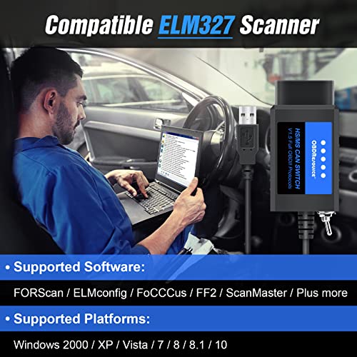 FORScan OBD2 Adattatore ELMconfig OBDII Strumento diagnostico USB con interruttore MS-CAN HS-CAN per la diagnosi di lettori di codici auto e leggeri per Ford F150 F250 solo su Windows
